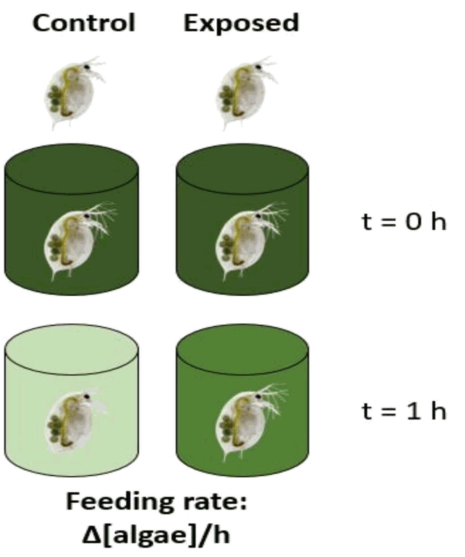 CASY also streamlines algae standardization for Daphnia feeding assays. Because feeding behavior varies with water quality, CASY measures both the initial algae concentration and the remaining amount after one hour, enabling reliable and consistent assay results.