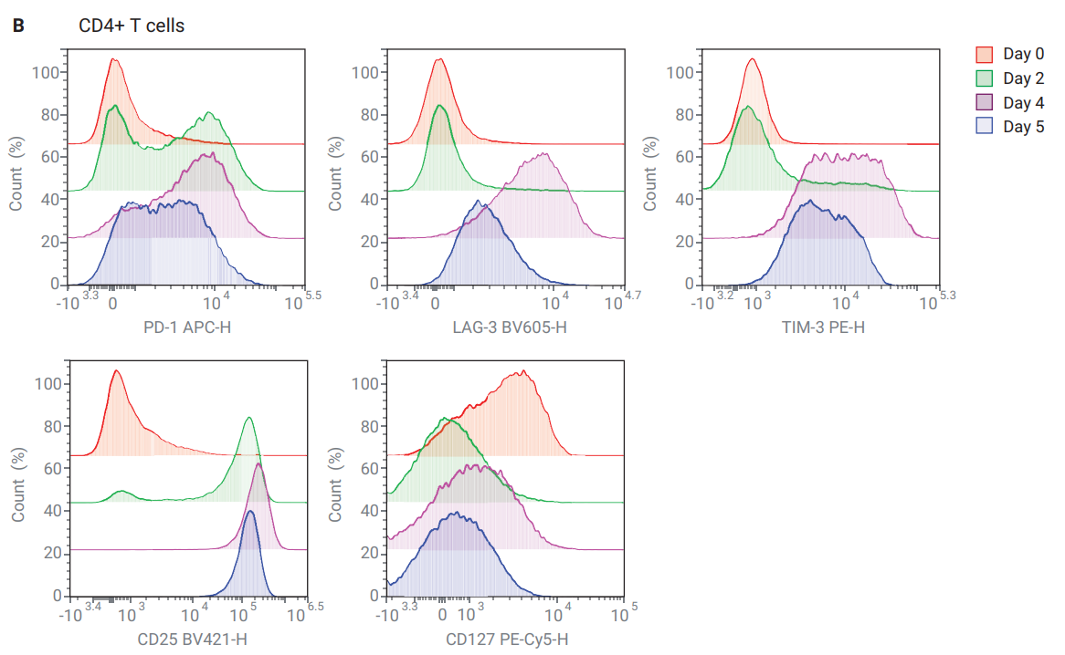 The NovoCyte Advanteon’s high-parameter detection capabilities make it a powerful platform for tracking T cell state transitions, from activation to exhaustion. This comprehensive profiling approach provides valuable insight for research in chronic infection, cancer immunology, and checkpoint blockade therapies.